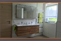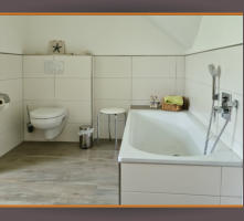 Badewanne, Dusche, WC, zwei Waschbecken, Gäste-